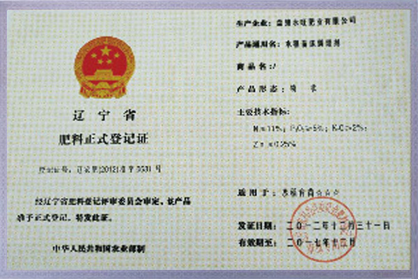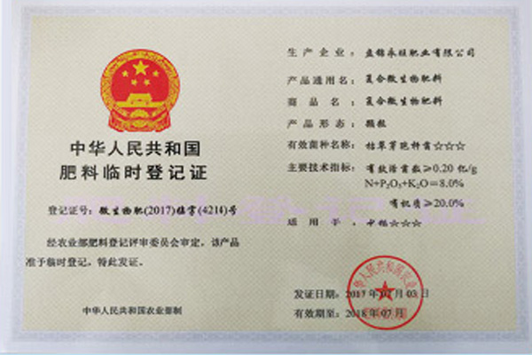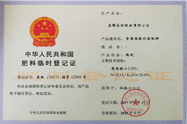 肥料正式登記證